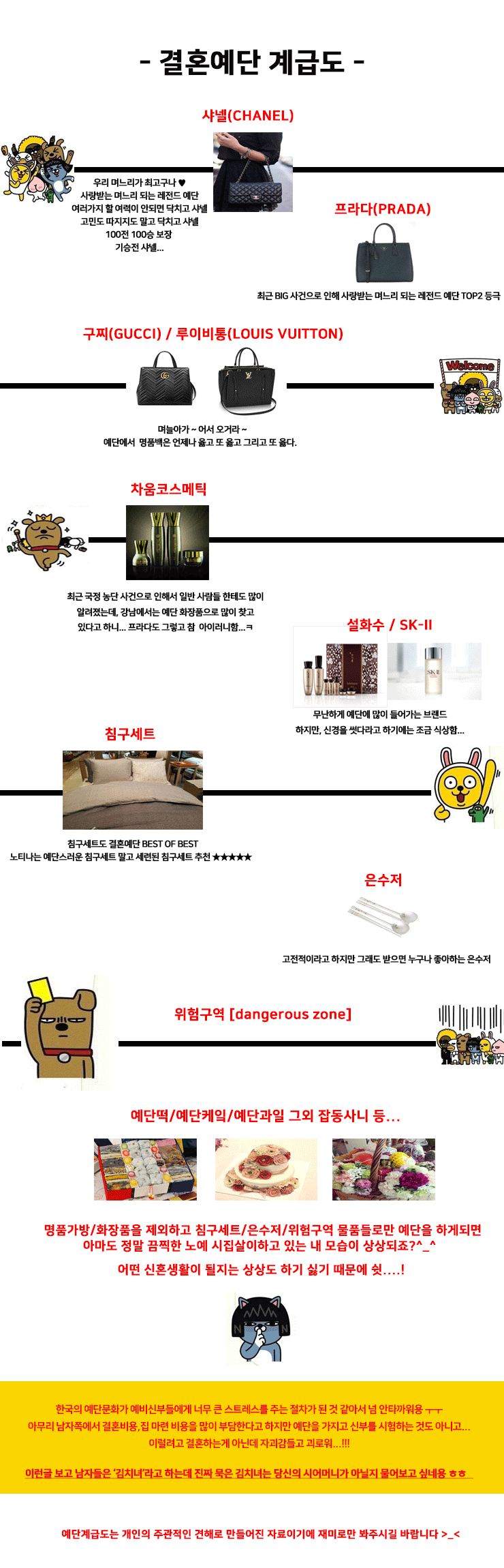 결혼예단 계급도(김치녀 주의)